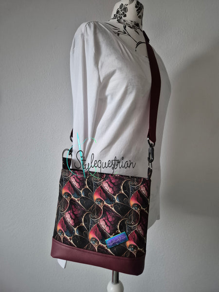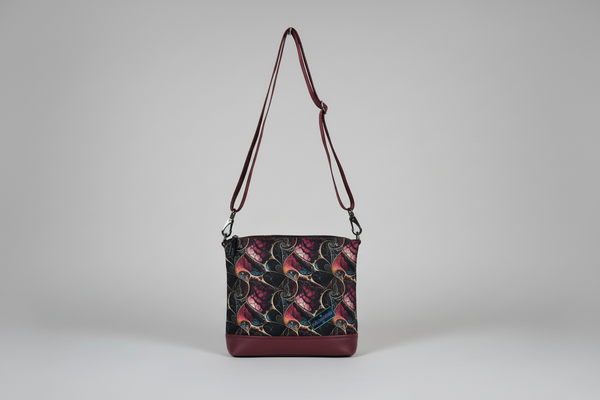 Diese handgefertigte Umhängetasche vereint beides: ein außergewöhnliches Design und durchdachte Alltagstauglichkeit. Das kunstvolle, harmonische Muster macht sie zu einem echten Blickfang, während die kompakte Form genügend Platz für alles Wichtige bietet. Der verstellbare Schultergurt sorgt für angenehmen Tragekomfort – ob quer getragen beim Stadtbummel oder klassisch über der Schulter im Berufsalltag. Im Inneren befindet sich ein großes Reißverschlussfach - für Handy oder Geldbeutel. Damit hat die ständige Suche endlich ein Ende und alle wichtigen Gegenstände ihren vorbestimmten Platz.