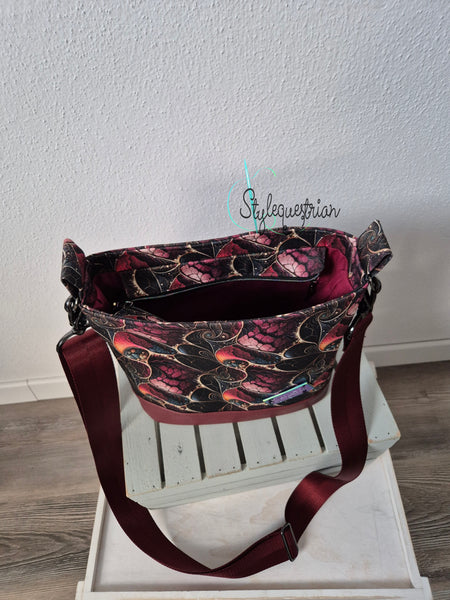 Diese Handtasche ist ein absolutes Unikat – so individuell wie die Frau, die sie trägt. Mit ihrem ausdrucksstarken Muster in warmen Bordeaux-, Rosé- und Goldtönen zieht sie dezent Aufmerksamkeit auf sich, ohne aufdringlich zu wirken. Sie ist die ideale Begleiterin für aufgeschlossene Frauen, die im privaten Alltag ebenso stilvoll auftreten möchten wie im Beruf.